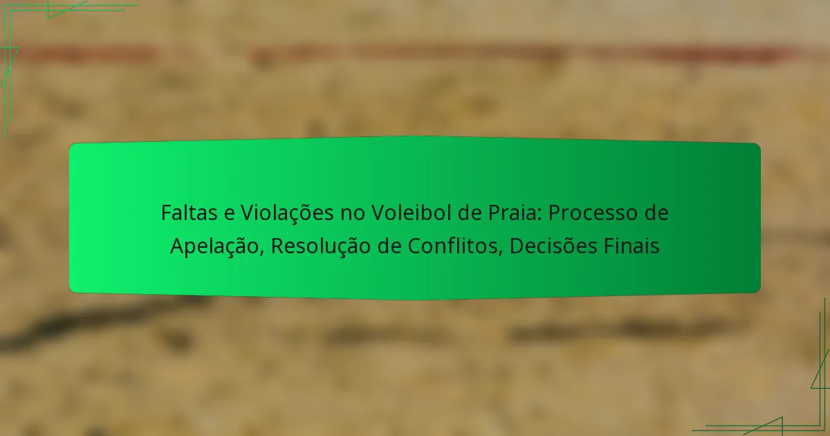 O voleibol de praia é regido por regras específicas relativas a faltas e violações que podem influenciar significativamente os resultados dos jogos. Compreender o processo de apelação e os métodos de resolução de disputas é essencial para jogadores e árbitros, a fim de garantir um jogo justo e manter a integridade do desporto. Esta abordagem estruturada permite o tratamento eficaz de conflitos e assegura que todas as decisões sejam tomadas com justiça em mente.