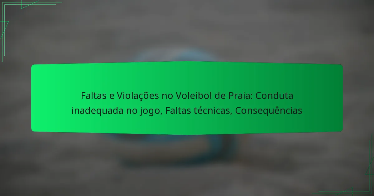 O voleibol de praia é regido por regras específicas relativas a faltas e violações que podem impactar significativamente os resultados dos jogos. A má conduta dos jogadores pode resultar em ações disciplinares, incluindo advertências ou até mesmo expulsões, com o objetivo de preservar o jogo limpo e o espírito desportivo. Violações graves, como desrespeito em relação a árbitros ou adversários, podem levar à remoção de um jogador do jogo para manter a integridade do desporto.