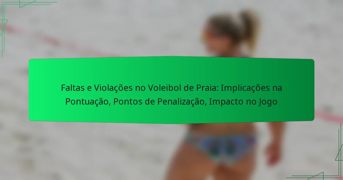 As penalizações no voleibol de praia surgem de várias faltas e infrações, impactando o jogo ao alterar a pontuação e a dinâmica dos jogadores. Compreender estas penalizações é crucial para jogadores e equipas estrategizarem de forma eficaz e evitarem a perda desnecessária de pontos.
