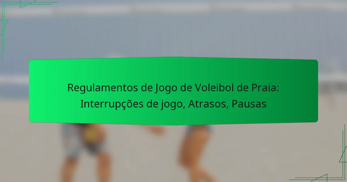 Atrasos no voleibol de praia podem surgir de vários fatores, incluindo condições meteorológicas, problemas de equipamento ou lesões de jogadores. As regras estipulam que as equipas devem estar preparadas para retomar o jogo prontamente para minimizar interrupções, com os oficiais tendo a autoridade para impor limites de tempo a essas interrupções.