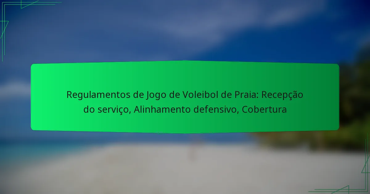 No voleibol de praia, compreender as regras que envolvem a receção do serviço, o alinhamento defensivo e a cobertura é essencial para um jogo bem-sucedido. Os jogadores devem cumprir regras específicas ao receber serviços, enquanto o posicionamento estratégico é vital para contrariar os ataques dos adversários. Além disso, estratégias de cobertura eficazes melhoram a capacidade de resposta e a coordenação de uma equipa durante os rallies, contribuindo para um desempenho aprimorado em campo.