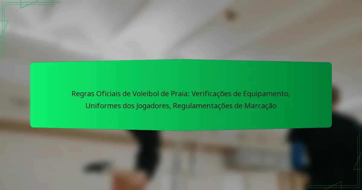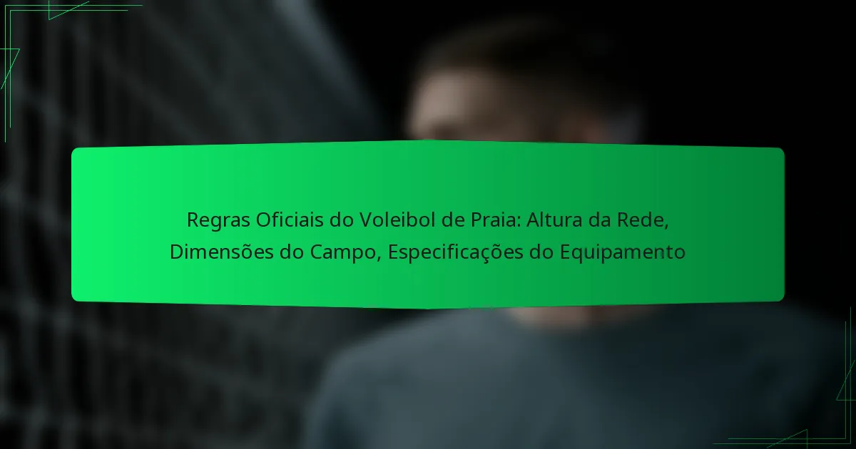O voleibol de praia é regulamentado por regras oficiais estabelecidas por organizações como a Fédération Internationale de Volleyball (FIVB) e a USA Volleyball, que garantem um jogo justo e consistência nas competições. Os elementos-chave do jogo incluem sinais dos árbitros para uma comunicação eficaz, bem como timeouts regulamentados que permitem às equipas estrategizar durante os jogos. Compreender estas regras é crucial para jogadores, treinadores e fãs.