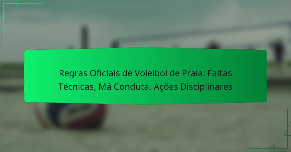 No voleibol de praia, as faltas técnicas e a má conduta são aspetos críticos que garantem a integridade e o fluxo do jogo. As faltas técnicas interrompem o jogo e podem levar a penalizações que afetam o resultado, enquanto a má conduta mina o espírito do desporto e pode resultar em ações disciplinares. Estas ações variam desde advertências até suspensões, dependendo da gravidade das violações, destacando a importância de aderir às regras estabelecidas.